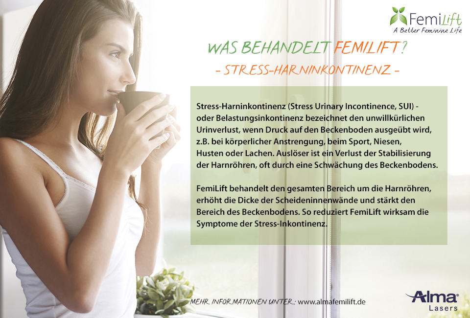 Somit bietet der FemiLift CO2 Laser bei leichten Formen der Stressinkontinenz eine nicht-operative aber effektive Therapieoption, die schmerzarm und ohne berufliche Ausfallszeit genutzt werden kann.