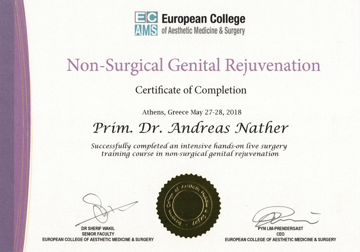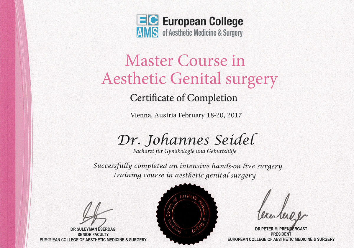Dr. Andreas Nather und Dr. Johannes Seidel absolvierten unter anderem den renommierten "Master Course in Aesthetic Genital surgery" am European College of Aesthetic Medicine & Surgery und zählen daher nicht nur zu den erfahrensten, sondern auch zu den am besten ausgebildeten Ärzten weltweit auf diesem Gebiet.