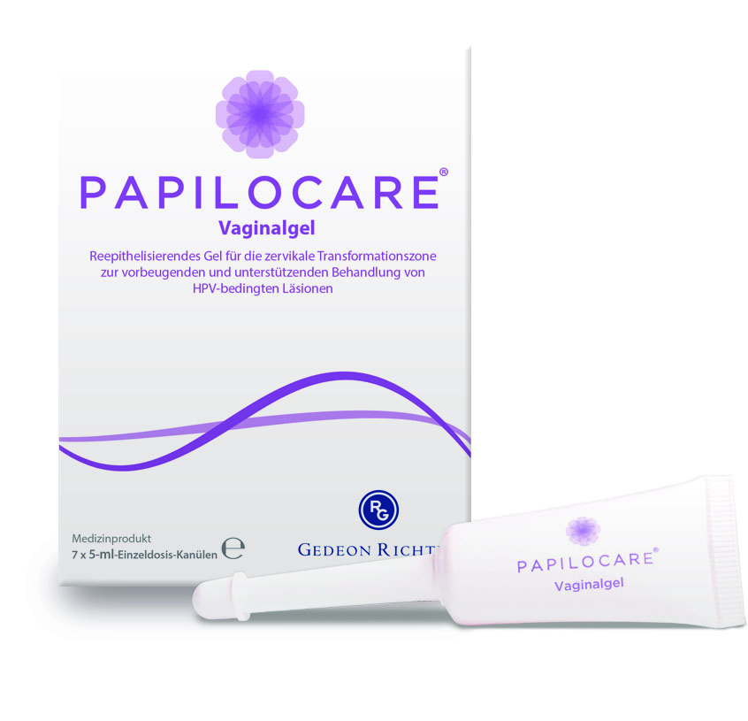 Seit 2020 ist Papilocare® am österreichischen Markt verfügbar. Das Vaginalgel zur Behandlung und Vorbeugung von HPV-bedingten zervikalen Läsionen zeichnet sich durch seine sieben rein natürlichen Inhaltsstoffe wie Hyaluronsäure, Aloe Vera sowie dem Heilpilz Coriolus Versicolor aus. Papilocare® wirkt zellerneuernd und bringt zusätzlich die Scheidenflora wieder ins Gleichgewicht.