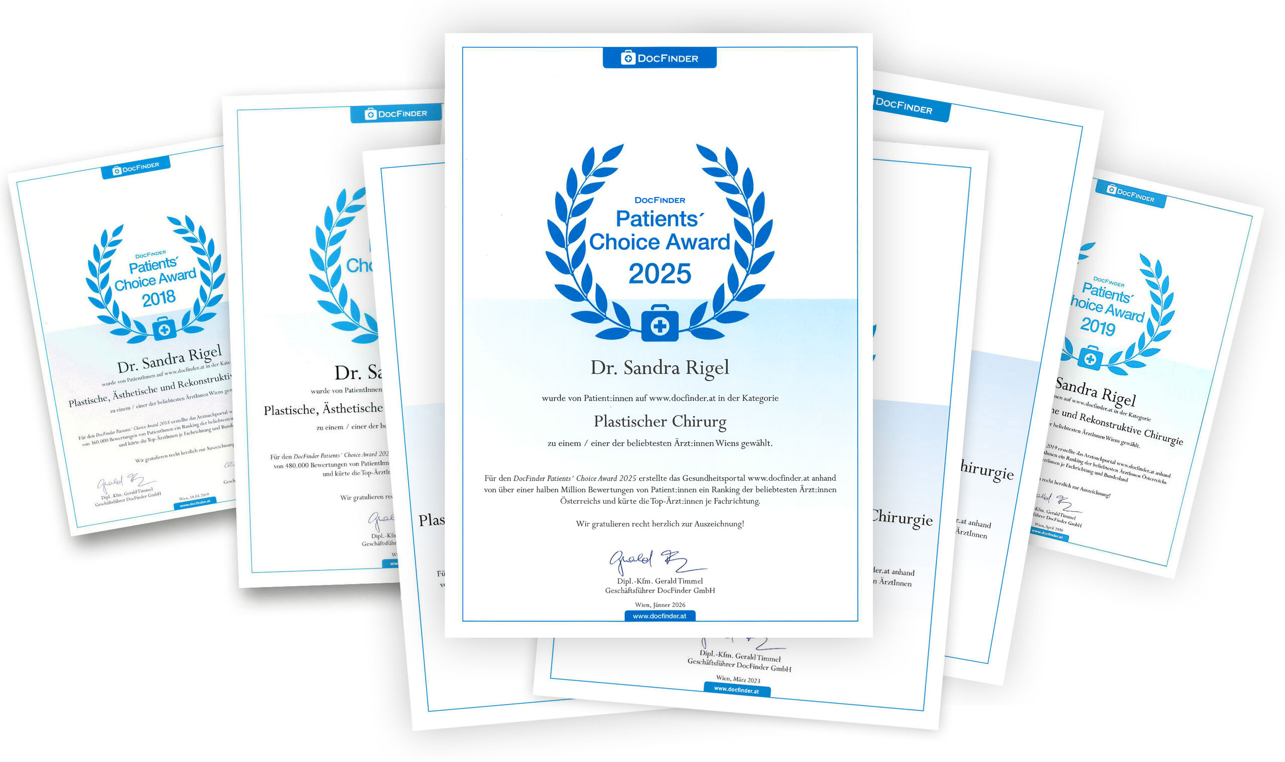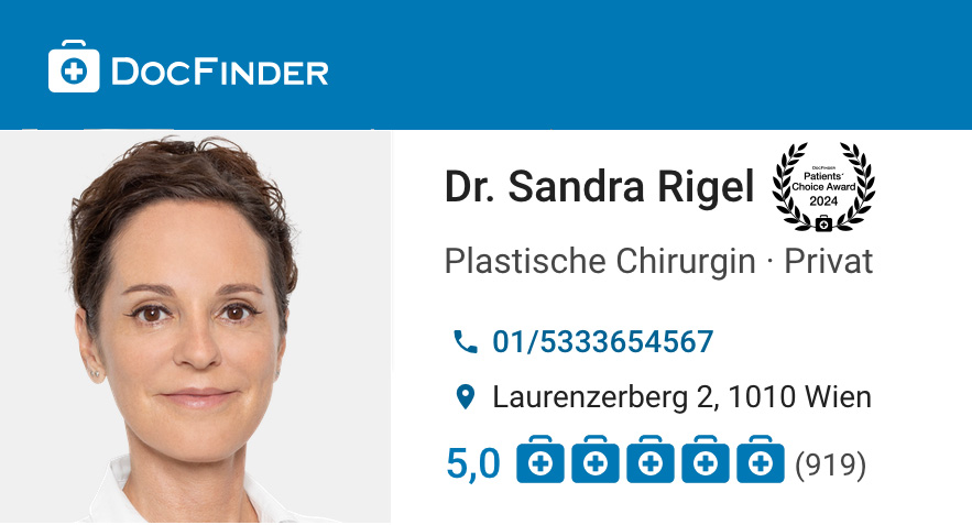 Dr. Sandra Rigel wurde mit dem Patients' Choice Award 2018, 2019, 2020, 2021, 2022, 2023, 2024 und 2025 zu einer der beliebtesten Ärztinnen Wiens gewählt.