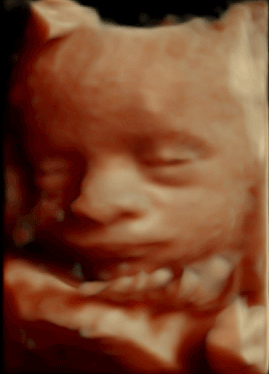 Diese Zeit ist der optimale Zeitpunkt für Ganzkörperaufnahmen. Bei guten Ultraschallbedingungen kann man die Kindesbewegungen und die Extremitäten sehr schön sehen; die Gesichtszüge sind meist aber nur schwer zu erkennen.