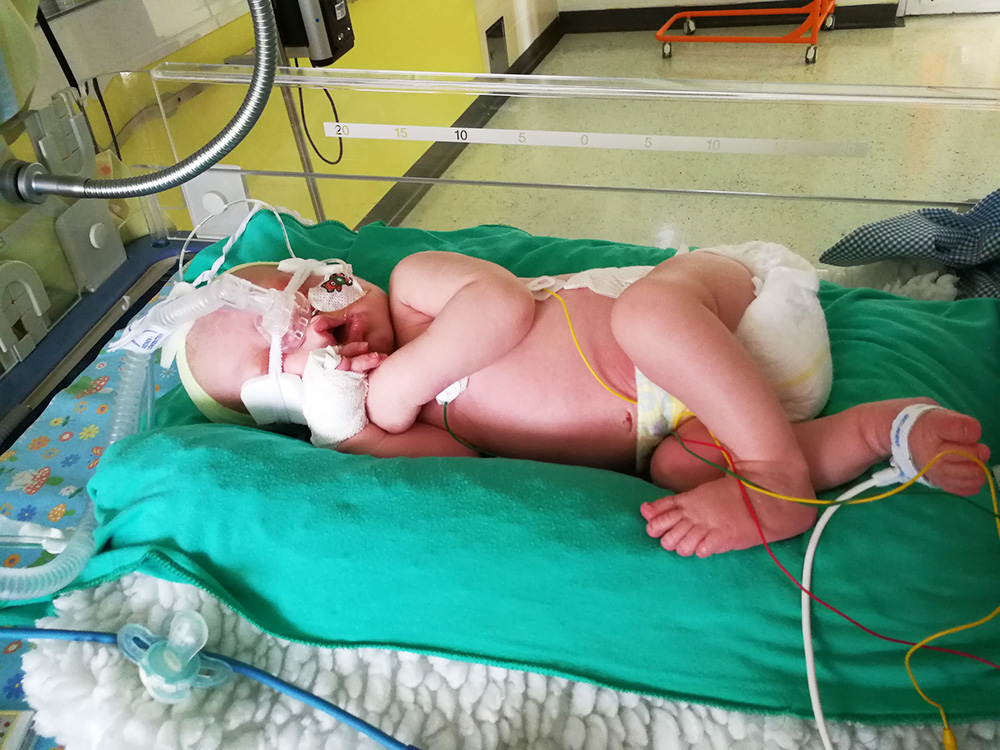 Nur zwei Tage nach unserer Entlassung mussten wir daher zurück ins Krankenhaus in die Kinderklinik St. Pölten und der Überlebenskampf begann. Der Zustand meines Kindes verschlechterte sich rapide, sodass er nur zwei Tage später auf die Intensivstation unter Quarantäne gebracht wurde. Da er zu klein und zu schwach war, übernahmen Maschinen das Atmen für ihn und Essen wurde ihm nur noch über Schläuche verabreicht.