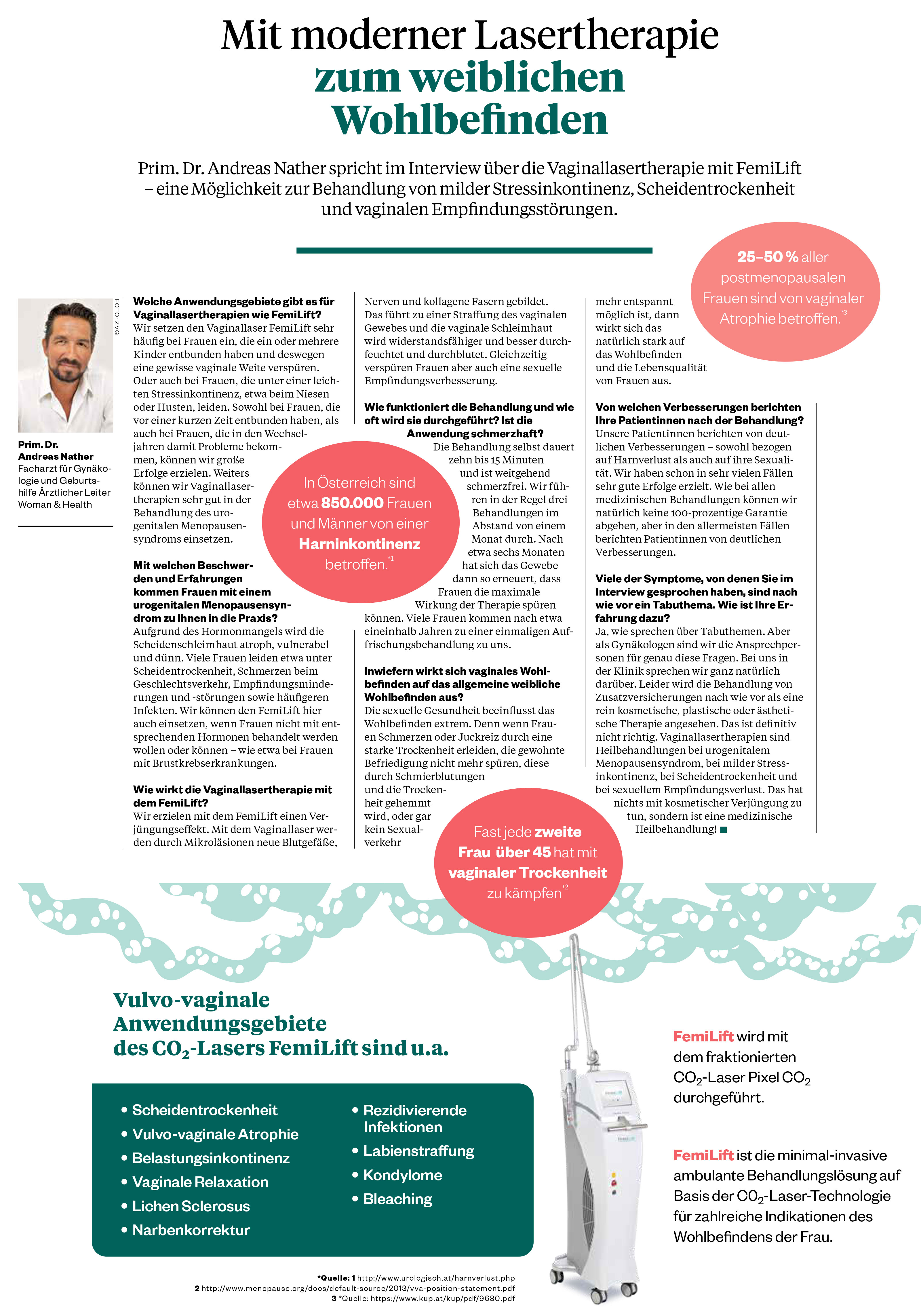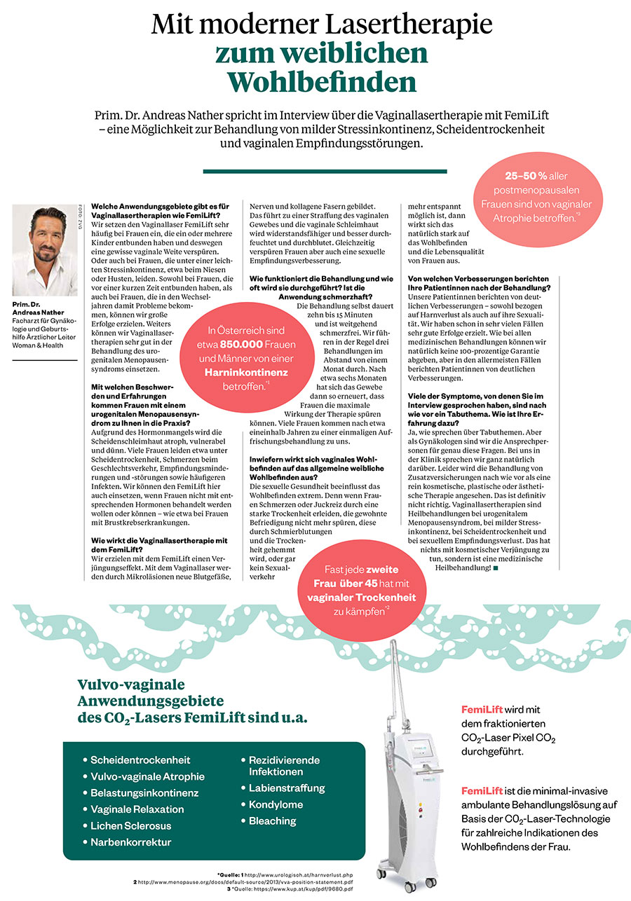 Prim. Dr. Andreas Nather im Interview zur Vaginal-Laser-Therapie gegen Scheidentrockenheit, Stressinkontinenz und vaginaler Empfingungsstörungen.